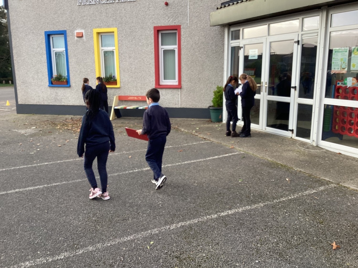 We went outside for maths today to explore all the lines and angles that we could find around our school.